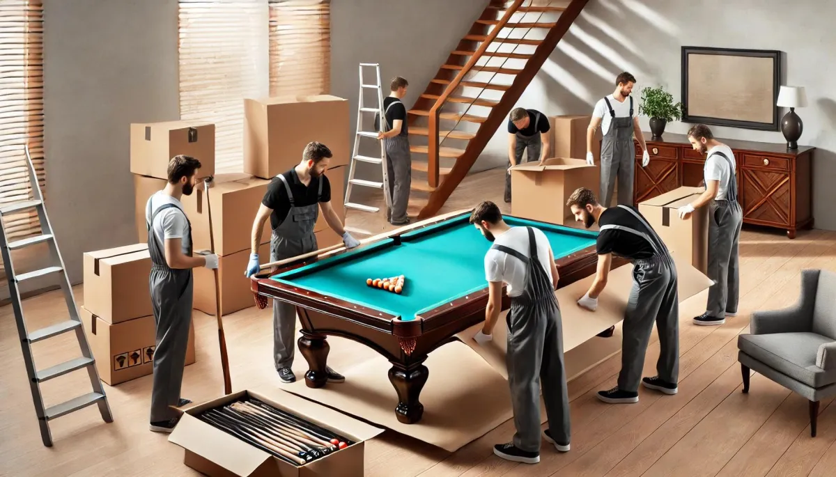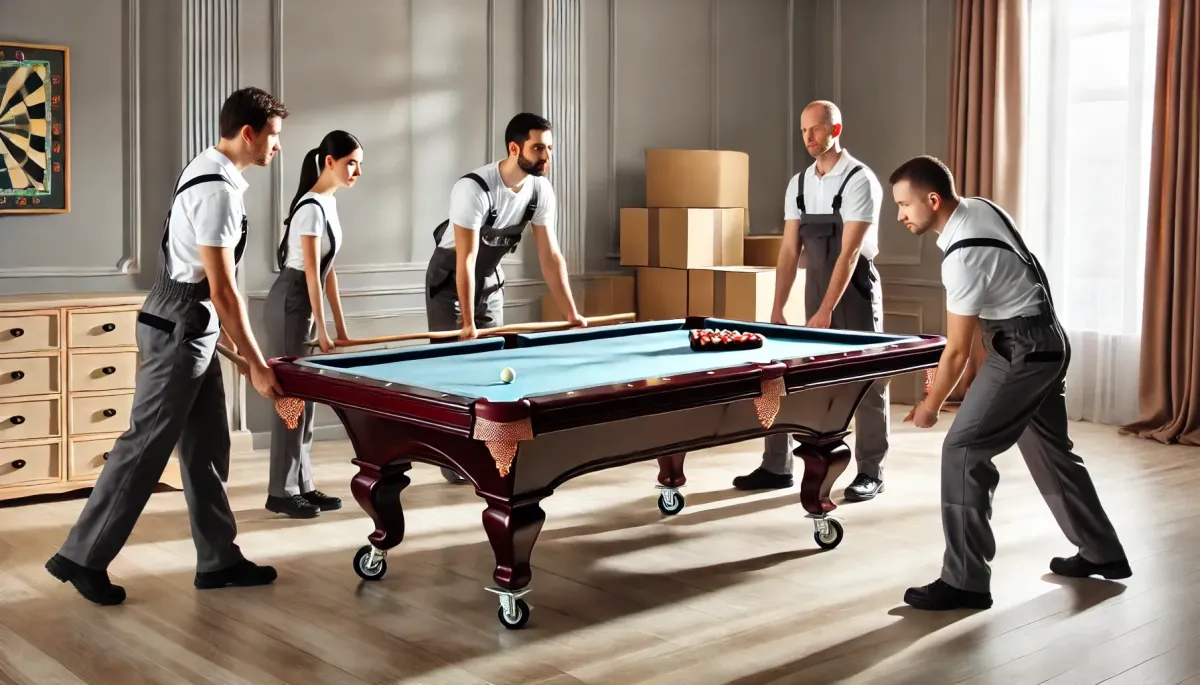 Professional relocation services for your billiard table, ensuring safe transport and precise reassembly. Our expert team handles every aspect of the move, from careful disassembly to perfect setup at your new location.